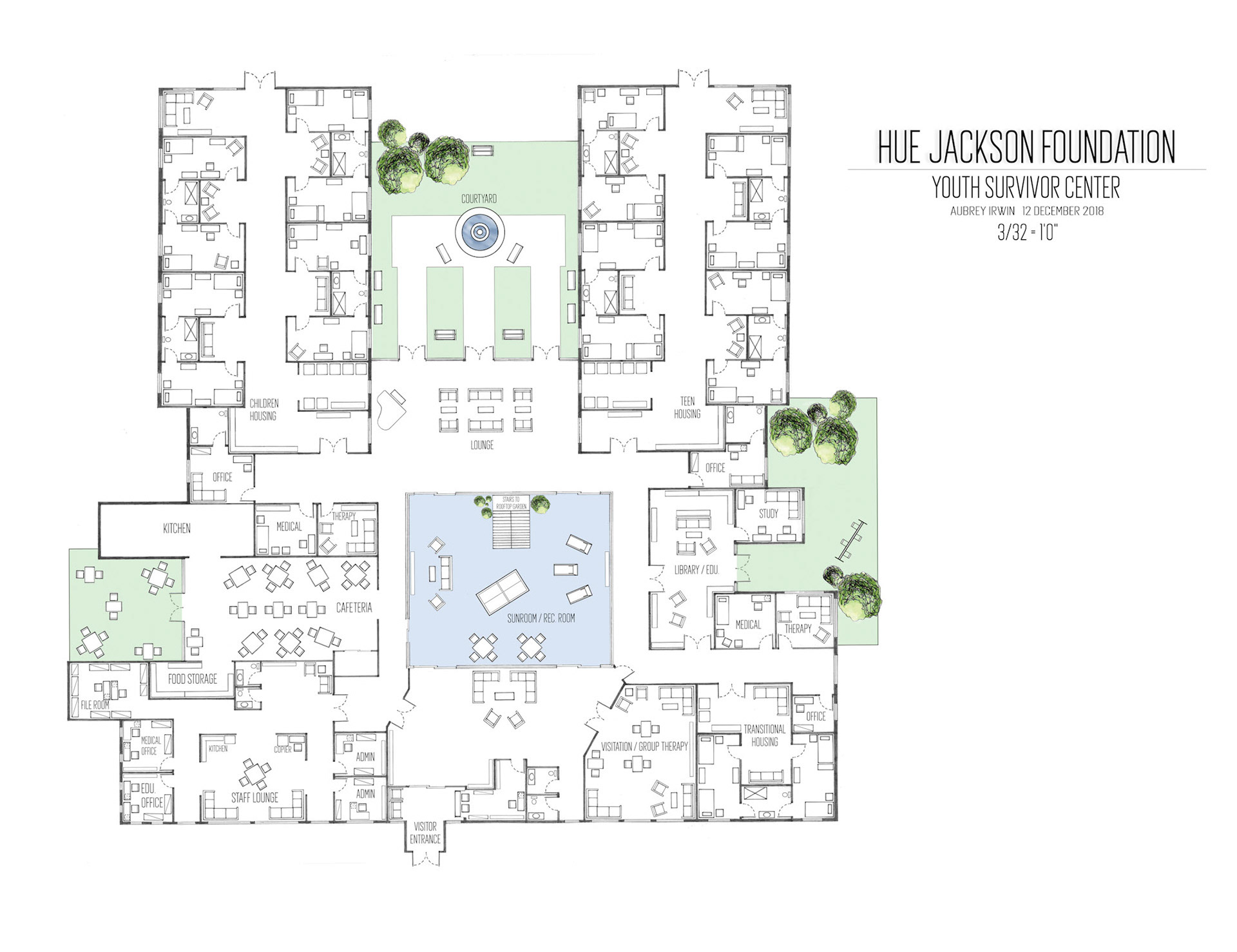 A sponsored project through the Hue Jackson Foundation. This project focused on space planning and floorplan experience, designing a Youth Survivor Center for survivors of sex trafficking.